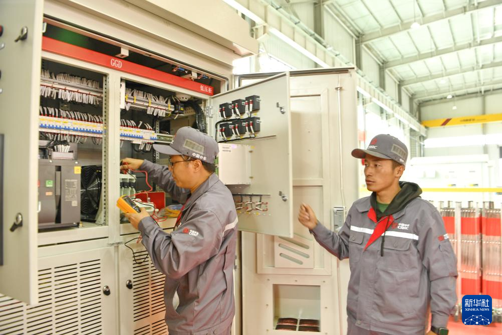 8月14日,在中车山南清洁能源装备产业园,工人对配电柜产品进行调试。新华社记者 张汝锋 摄