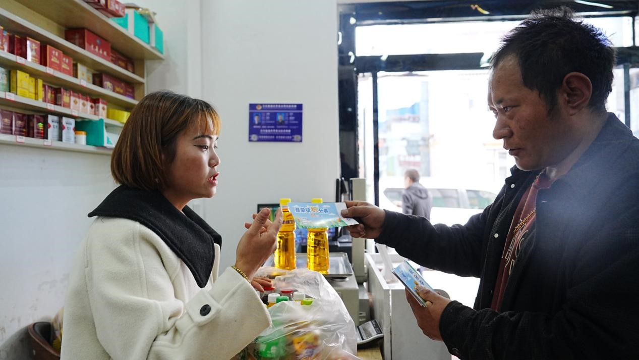 老百姓利用积分兑换商品(8月24日摄)。新华网发 谢林翰 摄