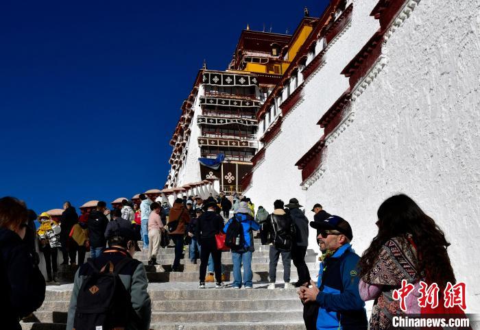 图为11月1日,外国游客参观布达拉宫。中新社记者 李林 摄