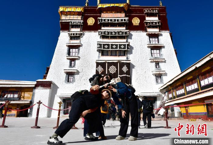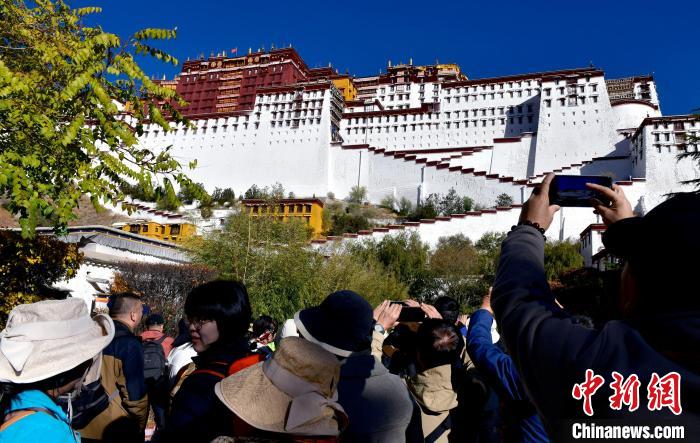 图为11月1日,游客在布达拉宫德央夏广场拍照。中新社记者 李林 摄