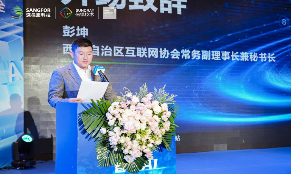 活动现场,西藏自治区互联网协会常务副理事长兼秘书长彭坤致辞。工业和信息化部电子第五研究所AI团队负责人李继安博士结合航空、工业等领域典型案例,解析AI技术对产业变革的推动作用;深信服科技发布“一体化办公安全”“一站式安全托管”“面向AI的一朵云”三大创新产品,通过轻量化解决方案破解企业安全防护、云端部署及运维效率难题,为西藏企业提供“即开即用”的数字化工具;西藏秋心科技有限公司总经理杨立分享本地部署AICP算力平台的实践案例,为中小微企业智能化转型提供可复制经验。