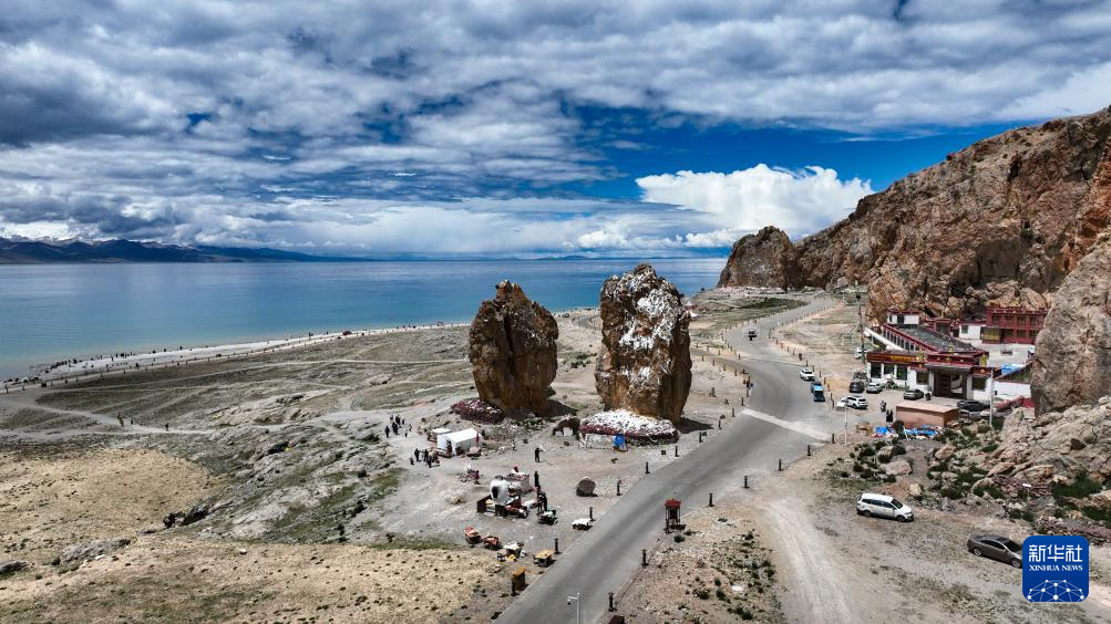 7月16日拍摄的纳木错扎西岛景区风光(无人机照片)。新华社记者 晋美多吉 摄
