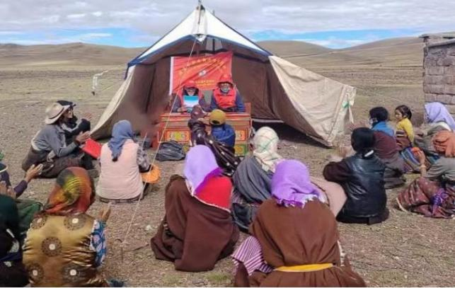 去年5月,班戈县委统战部(民创办)从全县各族干部群众中选拔政治立场坚定、道德品质高尚、理论水平扎实、宣讲经验丰富的业务骨干,组建“石榴籽”宣讲队。自成立宣讲队起,宣讲员们在海拔4700米羌塘草原,投入民族团结进步宣传教育活动。
