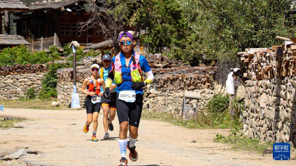 9月27日,参赛选手穿过古村落错高村。新华社记者 格桑朗杰 摄