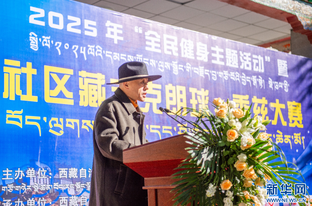 2025年“全民健身主题活动”暨社区藏式克朗球、秀兹大赛启动仪式现场(10月20日摄)。新华网 旦增努布 摄