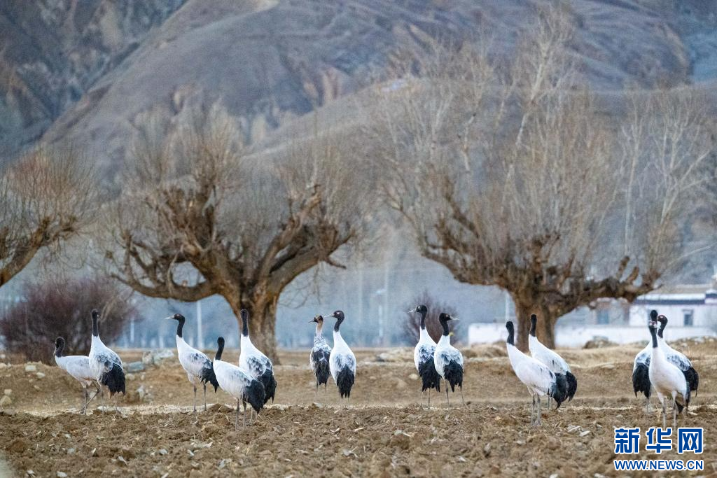12月18日,在西藏日喀则市南木林县境内拍摄的黑颈鹤。新华网 旦增努布 摄