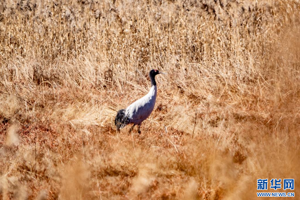 1月10日,在拉萨市拉鲁湿地拍摄的黑颈鹤。新华网 旦增努布 摄