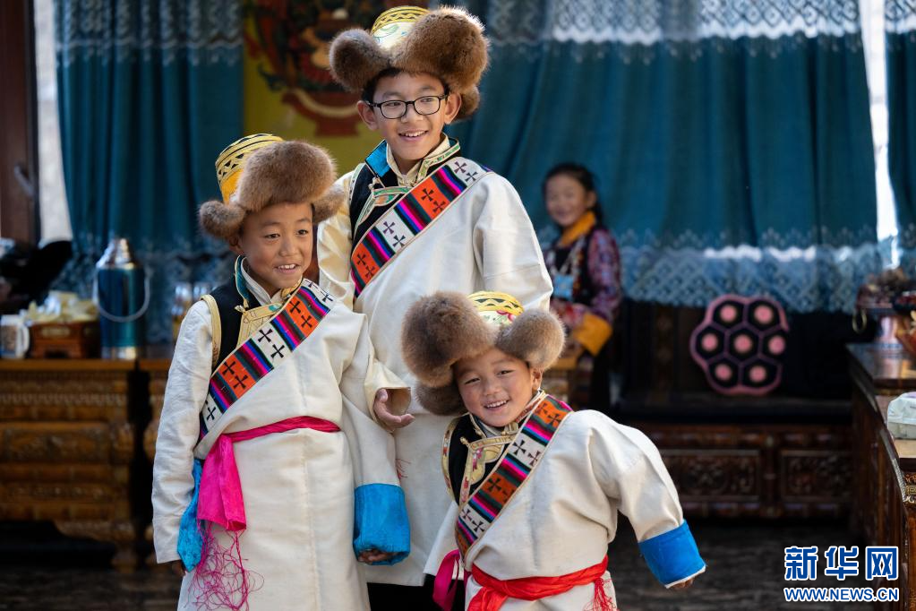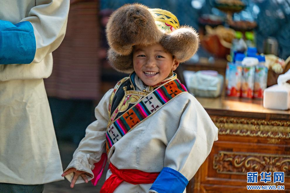 1月20日,西藏日喀则市桑珠孜区聂日雄乡楚松村村民多吉旺堆家穿上盛装的小朋友。新华网 旦增努布 摄