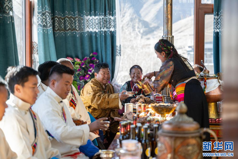 1月20日是藏历12月2日,也是日喀则农家新年初二。西藏自治区日喀则市桑珠孜区聂日雄乡楚松村村民多吉旺堆一家及亲朋好友相聚在家里,一起喝着青稞美酒,吃着香喷喷的牛羊肉,载歌载舞喜过农家新年。