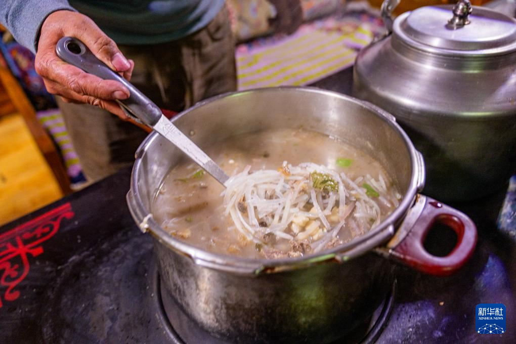 在藏语中,“古”意为“九”,“突”意为“面”,“古突”是一种用牦牛肉汤加入牛肉、萝卜、奶渣等食材熬煮的面食。按西藏传统习俗,“古突”夜,家家户户迎来团聚,一起享用“古突”。