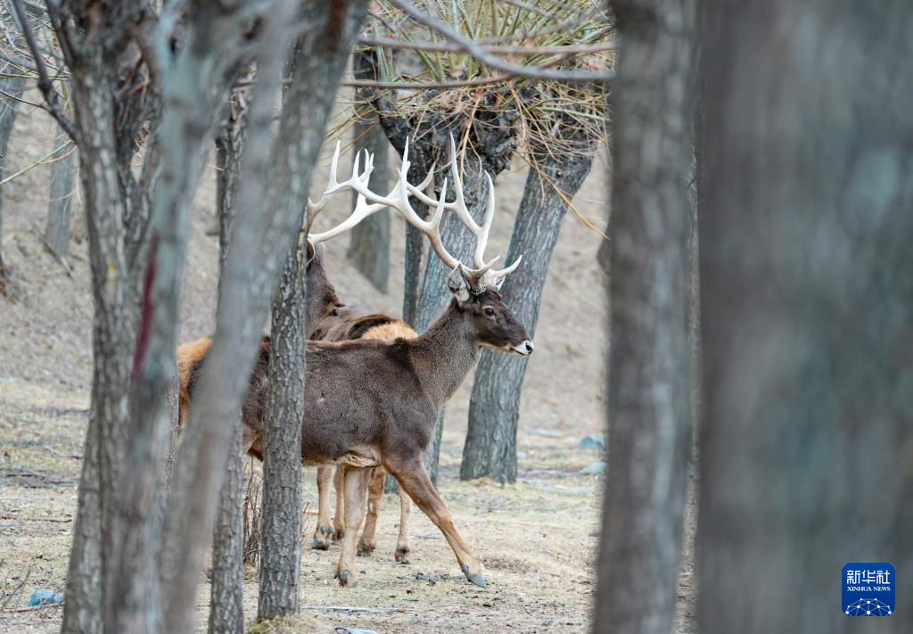 这是3月15日在西藏山南市乃东区结巴村拍摄的白唇鹿。新华社记者 晋美多吉 摄