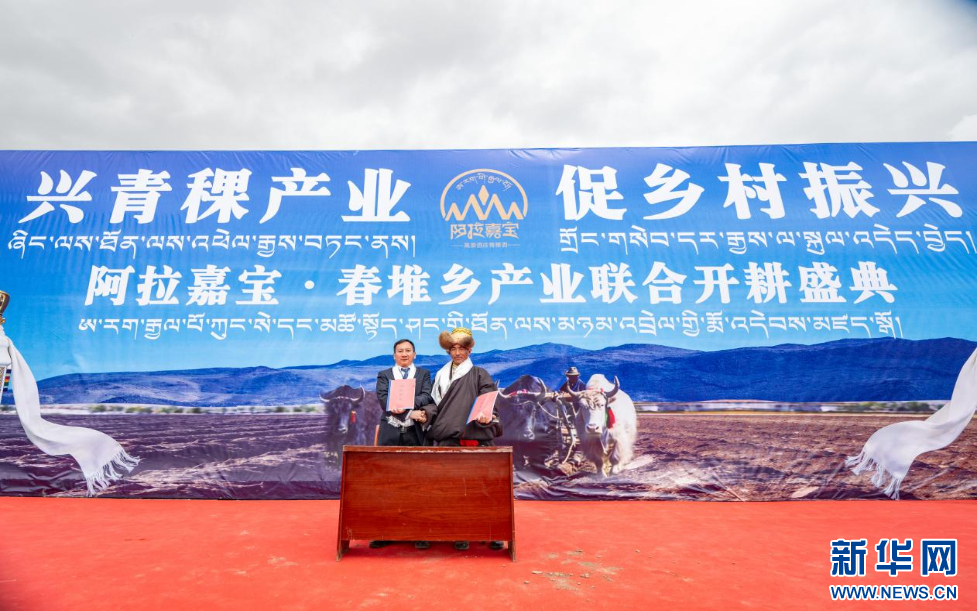 3月16日,西藏阿拉嘉宝酒业与村合作社签约仪式现场。新华网 旦增努布 摄