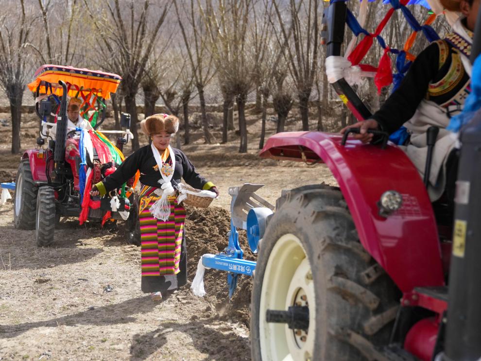 当天上午10时许,雅鲁藏布江畔的山南市结巴乡结巴村200多名村民身着盛装,扶老携幼来到田间地头,共迎这一盛大典礼。